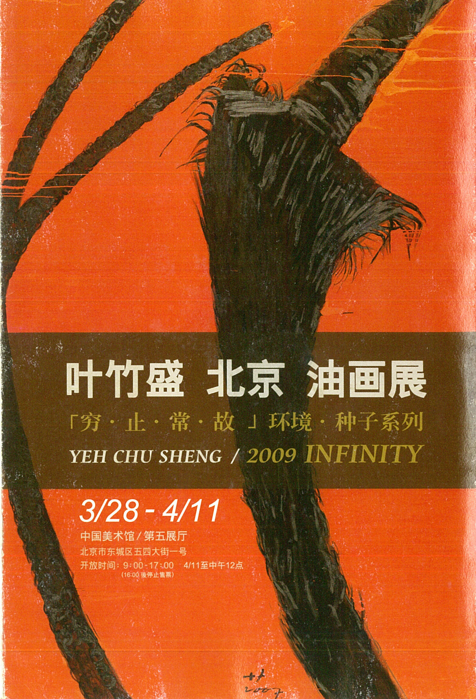 2009 年 3 月 28 日至 4 月 12 日,葉竹盛以《窮・止・常・固──環境・種子系列》於北京中國美術館舉行邀請展;同檔期亦以英文題名 “Infinity” 對外發布,聚焦自 2007 年起持續發展的「種子/環境生態」母題,以抽象繪畫語彙探討人與自然的關係與生態倫理。北京為藝術家 2009 年度「北京—上海—臺中」三館行程的首站,展出方向兼具檔案性(系列脈絡)與推新作的呈現,強化其以抽象形式回應環境議題的創作定位。